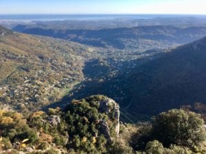 Możesz patrzeć w dół na Dolinę Wilka, a w zasadzie dolinę rzeki Wilk (Le Loup). Dalej, w odległości 20 km w linii prostej od Twoich oczu, możesz patrzeć błękit Morza Śródziemnego. Na wprost w dół Cannes, na lewo w dół Nicea – prawdopodobnie bardziej znane francuskie miasteczka. Na pierwszym dolnym planie festiwalowy spot nr 1 – też możesz patrzeć.