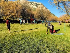 Pierwsza edycja festiwalu oficjalnie była jednodniowa, co niwelowało problem ze spaniem. Nieoficjalnie taśmy zostały na dzień kolejny. Jedyne co przychodzi mi do głowy, odnośnie do taniego zakwaterowania, to duży, płaski, trawiasty plac (łąka), przy spocie nr 2, na którym zorganizowano miasteczko slacklinowe i gdzie odbywały się warsztaty slackline dla początkujących i warsztaty z aerial silk.