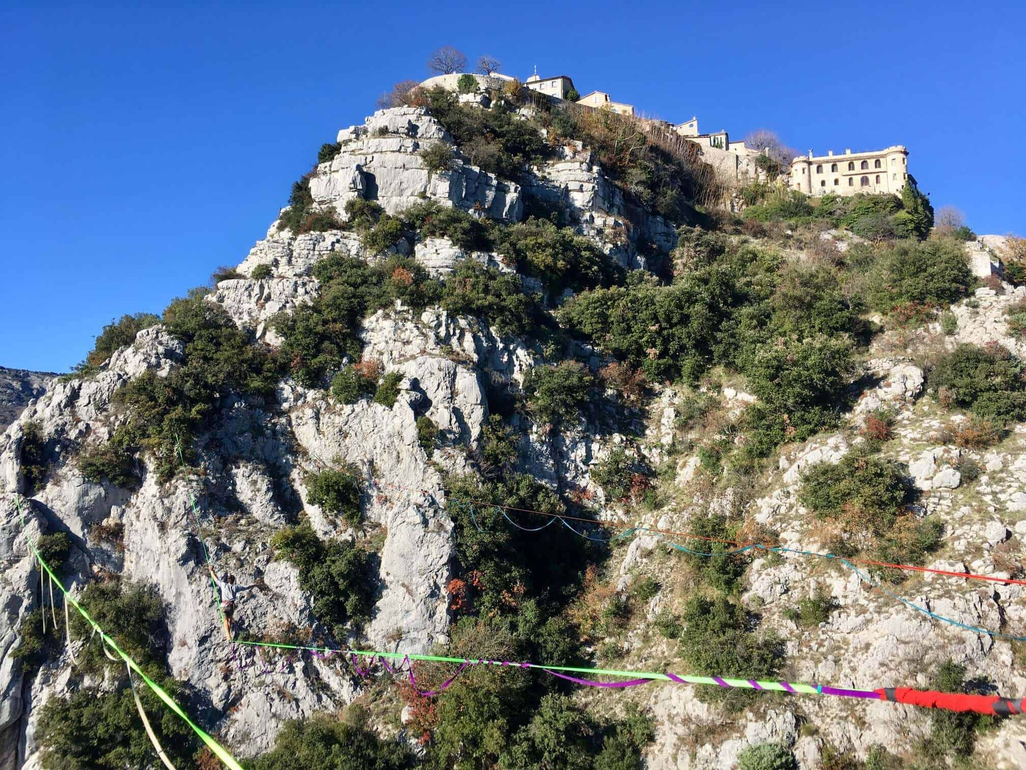 Gourdon, o przydomku „Orle Gniazdo”, z racji swojego położenia na skałce 758 mnpm, było przez ponad tysiąc lat, prawie niezdobytą twierdzą. Najpierw gniazdowali tu Rzymianie, potem przez dwa wieki Saraceni, dziś okolice zamku zamieszkuje 400 mieszkańców. I w tych okolicznościach przyrody, dnia 8 grudnia 2018 roku, odbyła się pierwsza edycja slacklinowego festiwalu.