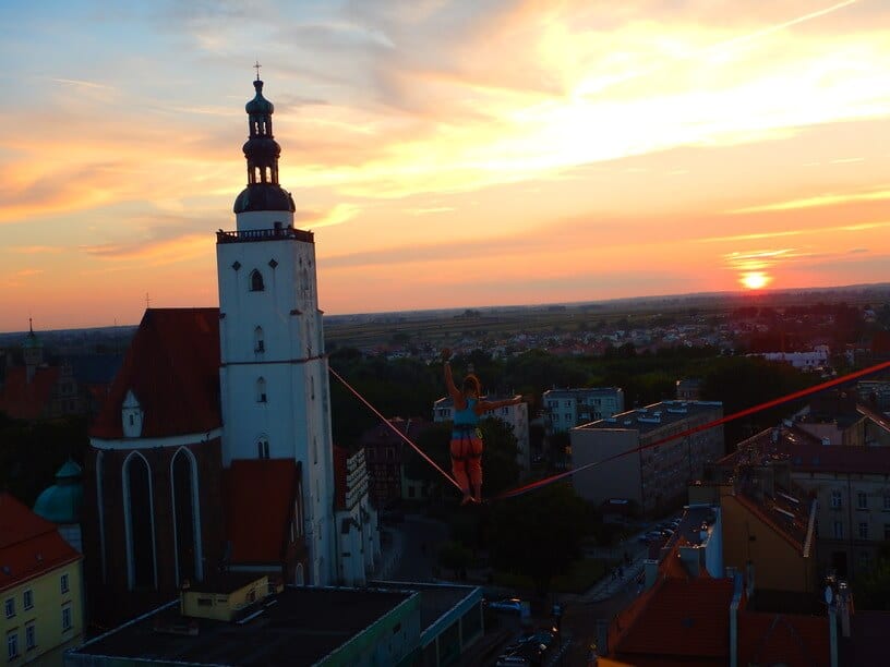 Spot z trzema najdłuższymi w Polsce, oficjalnymi taśmami urban highline (każda ponad 100m długości).