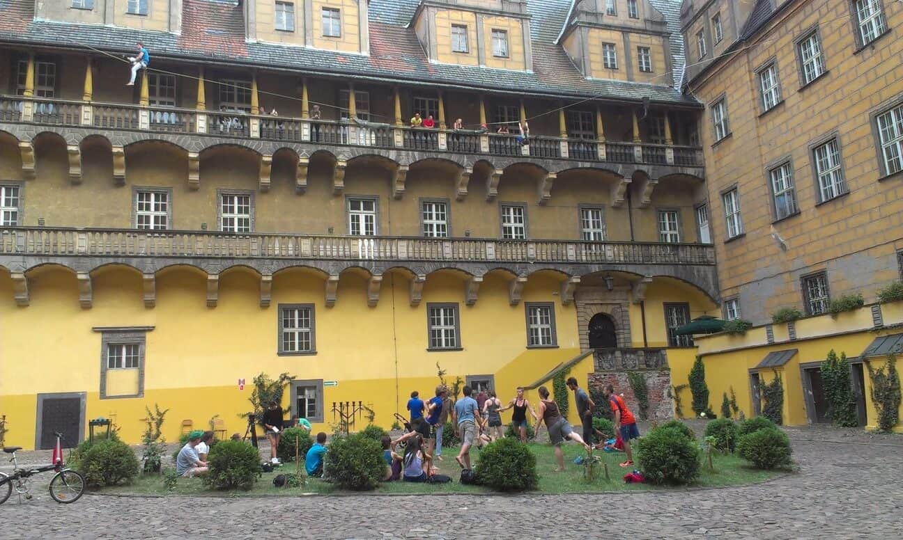 Do Wrocławia możesz dolecieć samolotem. Z kolei do Oleśnicy, z Dworca Głównego we Wrocławiu kursują pociągi regionalne co około 40-50min. Czas podróży to ~40 min. Cena ~ 2,5 Euro. W podobnym czasie i cenie przejedziesz też autobusem. Rozkład jazdy i bilety możesz znaleźć TU. Alternatywnie możesz zapytać na grupie Slackline Wrocław. Możliwe, że ktoś Cię podwiezie samochodem lub będzie towarzyszyć w podróży. Ze stacji PKP Oleśnica, na Zamek Książąt Oleśnickich, gdzie w zasadzie mieszkasz, masz 20 min na piechotę.