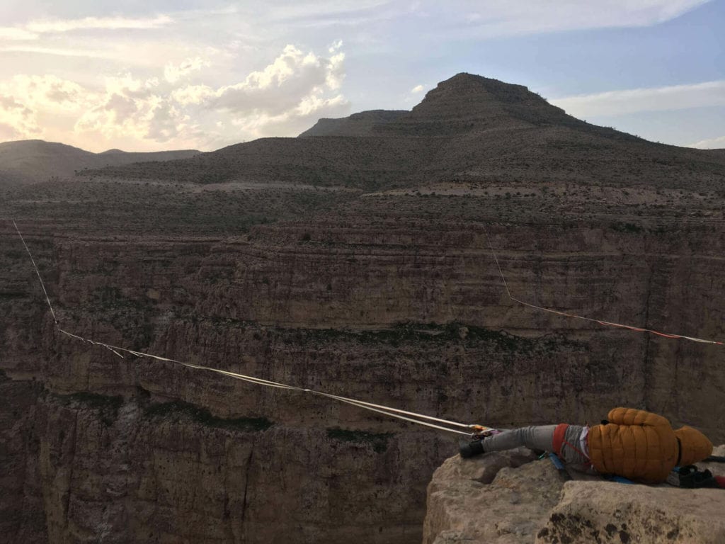Bliska okolica jest bardzo malownicza, malowana głównie kolorem kawy z mlekiem, z domieszką zieleni. Jak jest, każdy widzi i nic tu dodać, nic ująć. Spot highlinowy to rzeczony cypel. Na lewo taśmy krótsze, zawieszone na wysokości od 140 do 240 m, na prawo taśmy dłuższe, z wysokością powyżej 330 m.